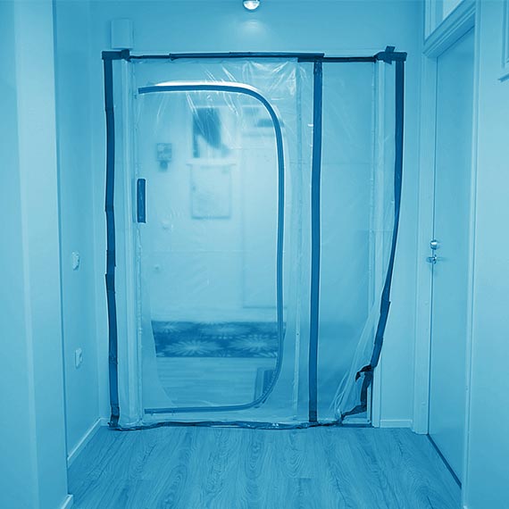 Suuremmissa purkutöissä osastoimme eli eristämme työmaan muista tiloista. Alipaineistus estää pölyn ja mahdollisten mikrobien leviämisen muihin tiloihin. Työ tehdään siististi ja turvallisesti.