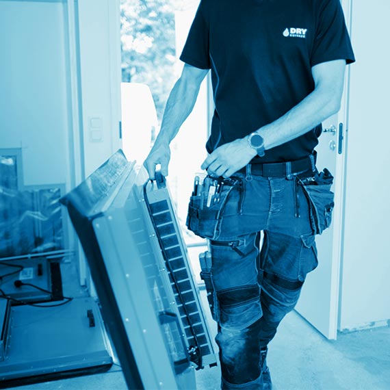 Kuivauskalustoa kohteeseen tulee juuri sen verran kuin tarvitaan – ei liikaa, ei liian vähän. Sama henkilö joka kalustot asentaa, seuraa niiden toimintaa ja tietää milloin työ on valmis.